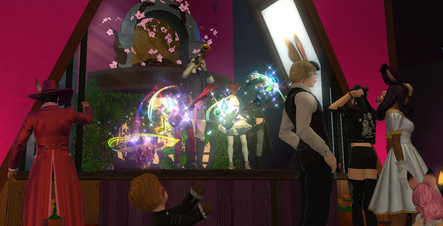 Voidsent is a light RP bard performance quintet in the game FINAL FANTASY XIV. Featuring bard editor Skynyrd Fraefolgwyn, we specialize in rock and pop music - see our YouTube channel for samples. We are based out of Goblin on the Crystal data center, and are available to perform on any North American or Oceana server.We frequently play venues all over Eorzea, and are available for venue and event bookings. Follow us on our social media links below to see where we are appearing next!